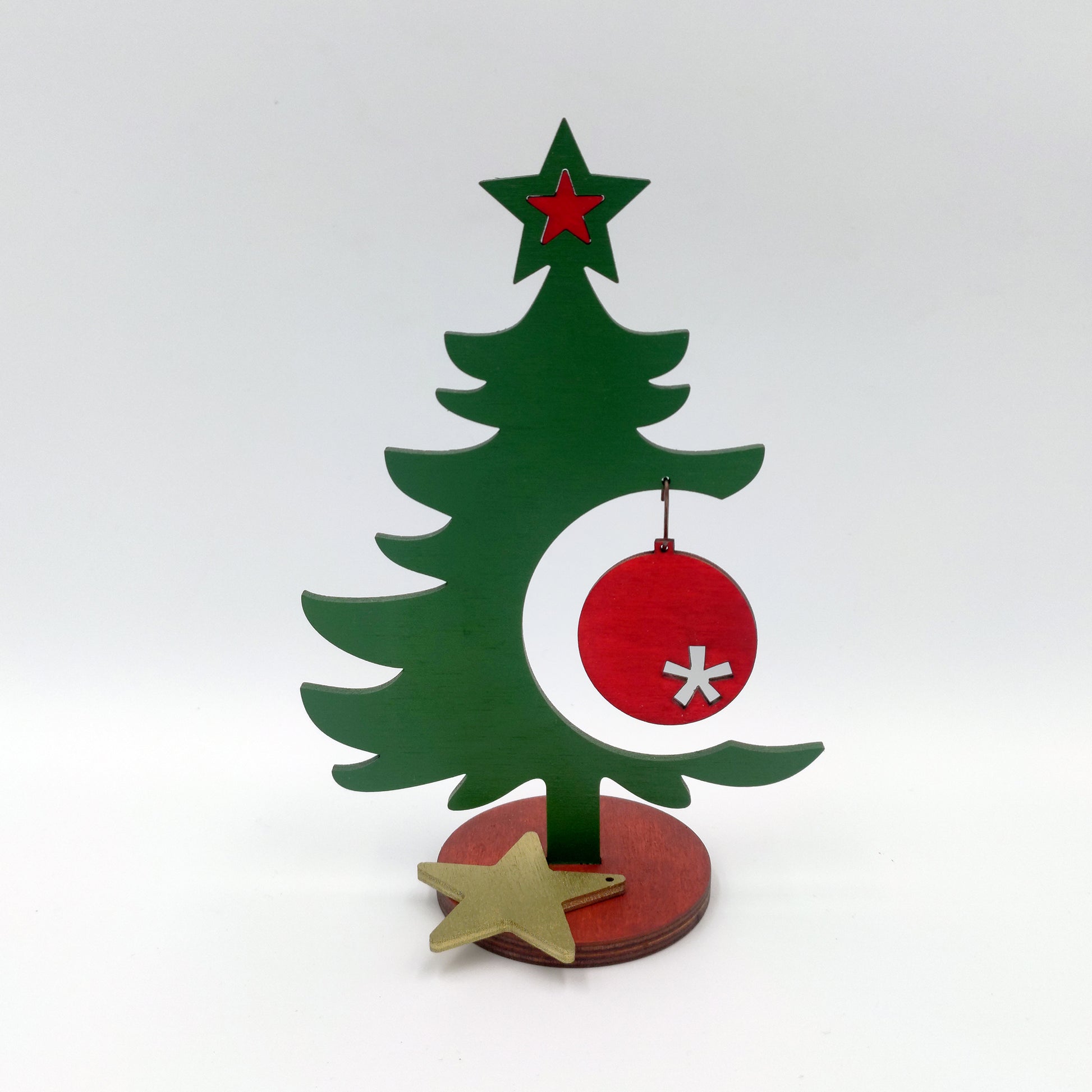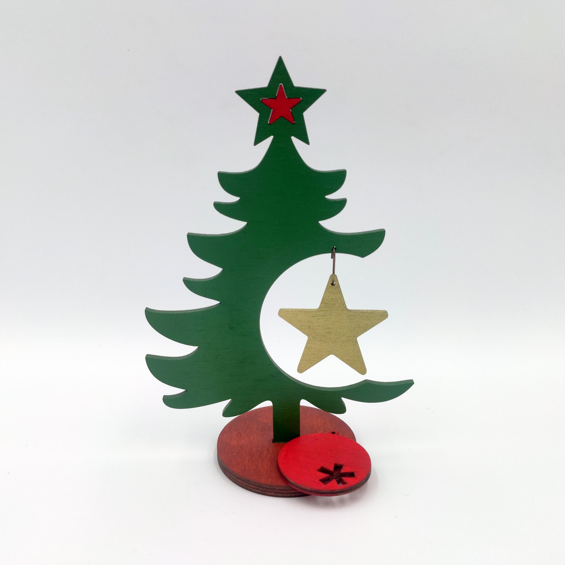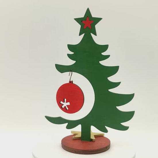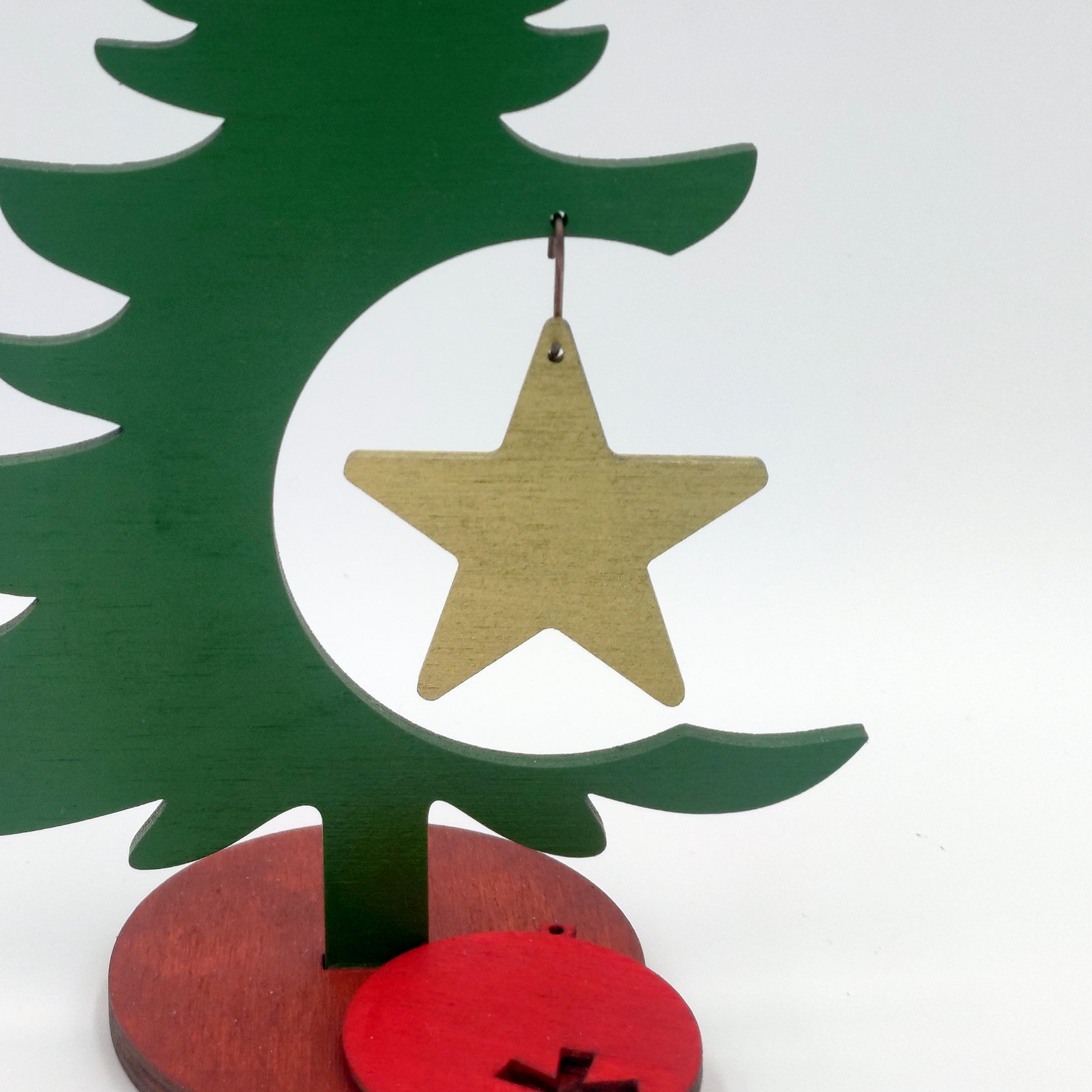 Διακοσμήστε τον χώρο σας με αυτό το μοναδικό χειροποίητο ξύλινο χριστουγεννιάτικο δέντρο που συνοδεύεται από δύο κρεμαστά διακοσμητικά. Το δέντρο σας προσφέρει την ελευθερία να αλλάζετε τη διακόσμηση του ανάλογα με τη διάθεσή σας: