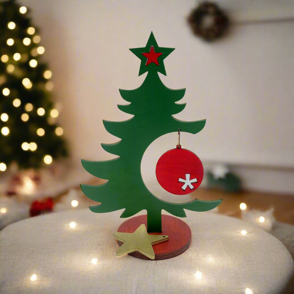 Ξύλινο Χριστουγεννιάτικο Δέντρο με Κρεμαστό Διακοσμητικό