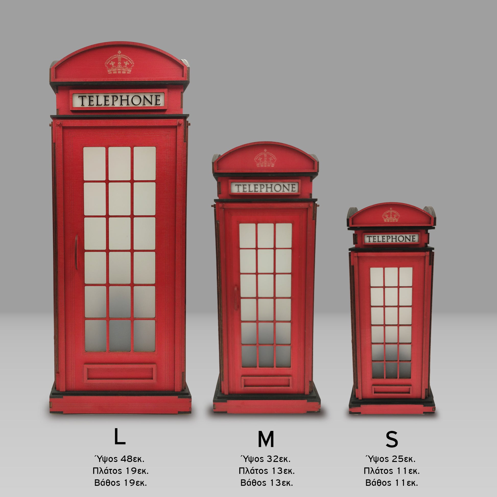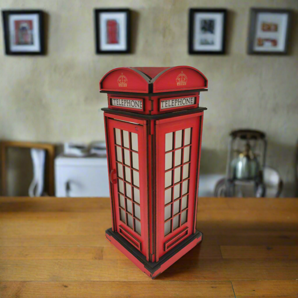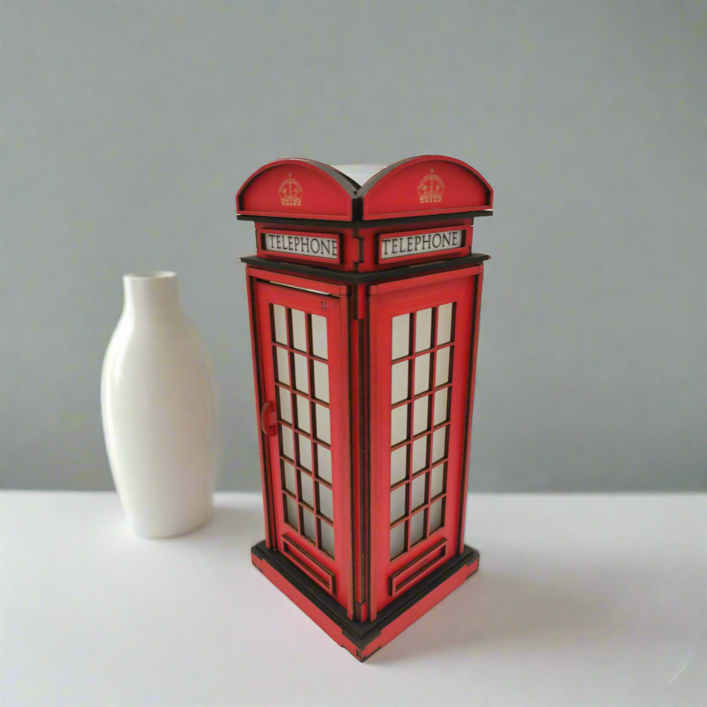 Σημείωση: Το προϊόν αυτό αποτελεί καλλιτεχνική αναπαράσταση εμπνευσμένη από τον κλασικό βρετανικό τηλεφωνικό θάλαμο. Δεν αποτελεί επίσημη αναπαραγωγή και δεν σχετίζεται ή συνδέεται με τη Βρετανική Μοναρχία ή οποιονδήποτε επίσημο φορέα του Ηνωμένου Βασιλείου.