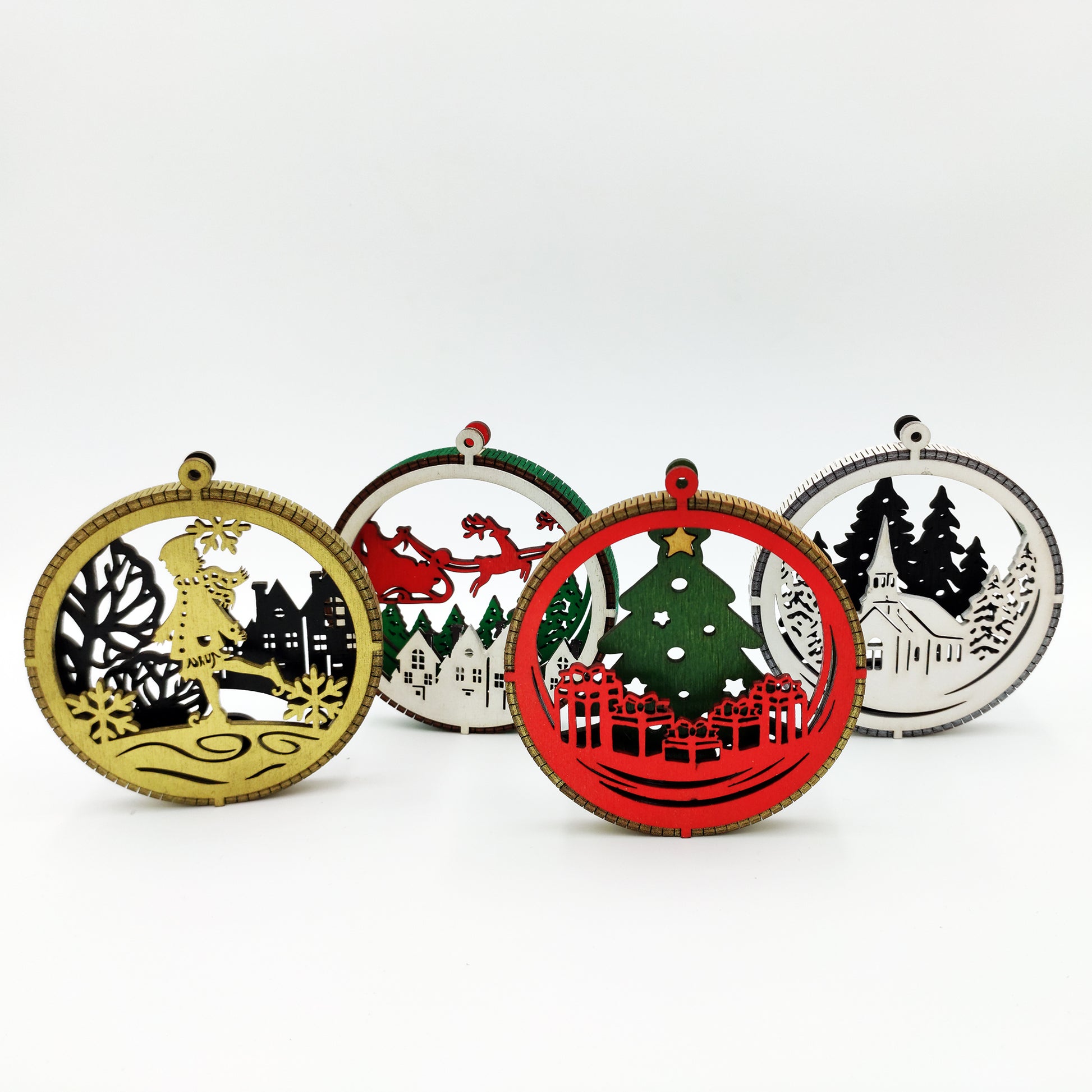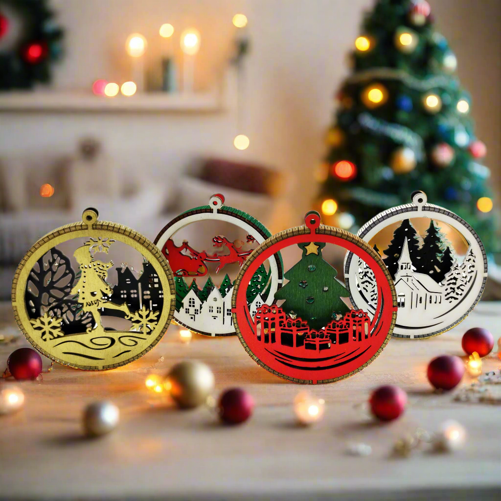 Ανακαλύψτε τη γοητεία των Χριστουγέννων με αυτό το μοναδικό σετ ξύλινων στολιδιών, ιδανικό για να προσθέσετε μια ξεχωριστή πινελιά στο δέντρο σας. Κάθε στολίδι είναι χειροποίητο και διαθέτει εντυπωσιακή λεπτομέρεια: