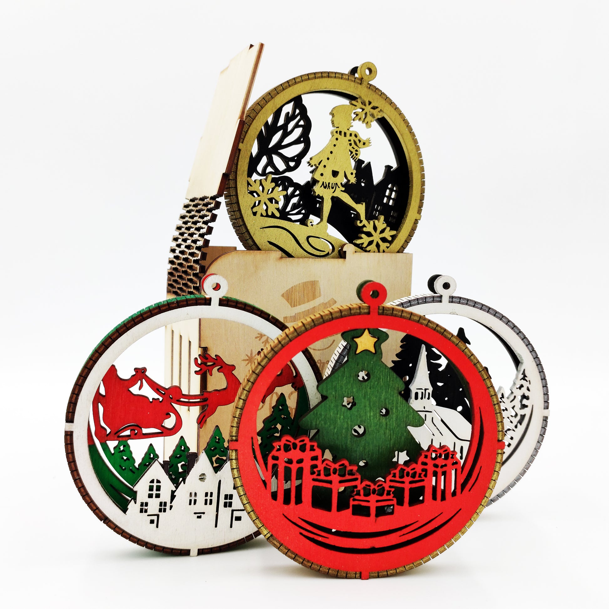 Όλα τα στολίδια παραδίδονται μέσα σε ένα όμορφο ξύλινο κουτί, που τα προστατεύει και τα καθιστά ιδανικά για δώρο.
